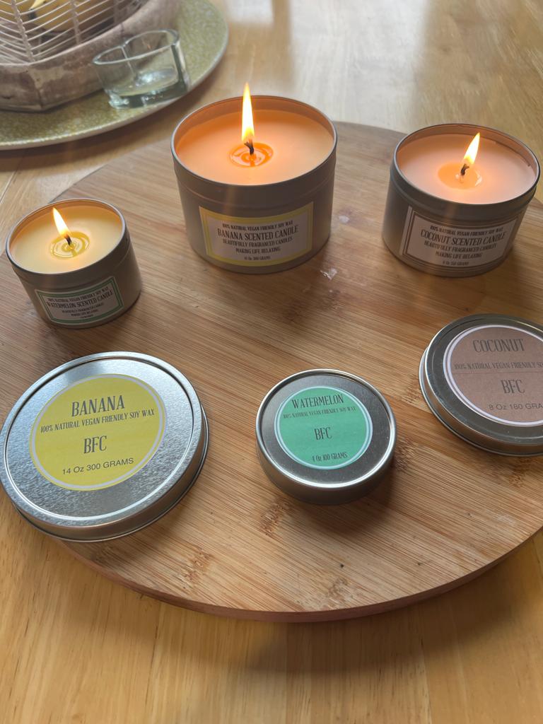gallery BF Candles ENJOY – From all at Beautifully Fragranced Candles At BFC we use a Soy wax blend. Expertly crafted using only natural ingredients that are easily replenished, ensuring a sustainable, plant-based solution for candle making